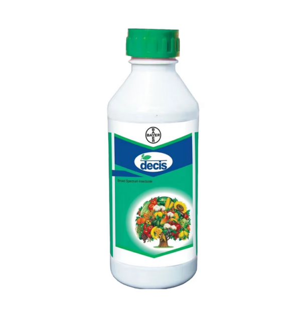 Bayer Decis is an effective insecticide containing Deltamethrin 2.8% EC, designed to disrupt the nerve functions of insects, leading to paralysis and eventual death. This broad-spectrum pest control solution is effective across various crops and targets multiple insect species, including bollworm and jassids.