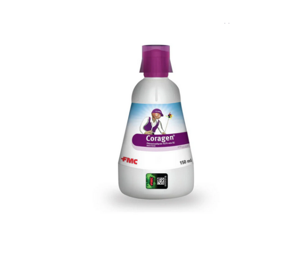 Coragen Insecticide, an anthranilic diamide, is a broad-spectrum insecticide formulated as a suspension concentrate. The active chemical, Chlorantraniliprole 18.5% W/W, is powered by Rynaxypyr, known for its unique action that effectively controls pests resistant to other insecticides.