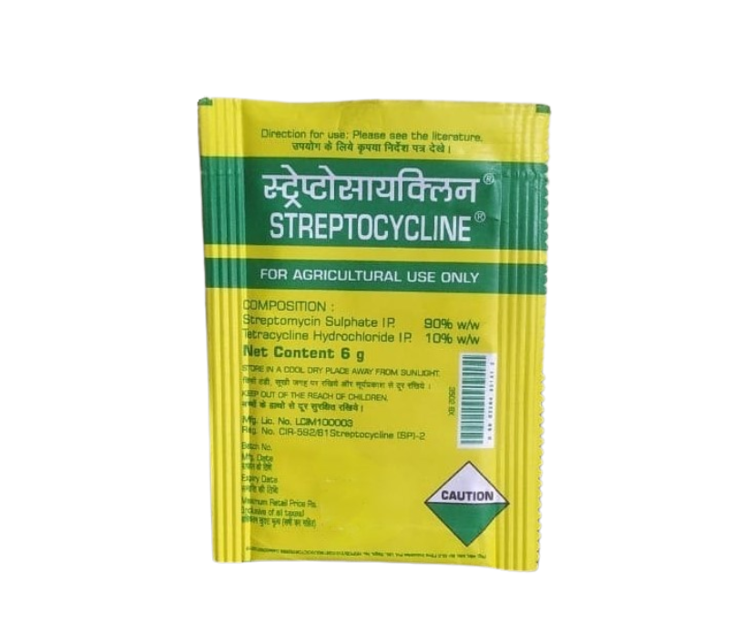 Streptocycline is an efficient antibacterial formulation designed for controlling bacterial diseases in various crops. It consists of Streptomycin Sulphate and Tetracycline Hydrochloride and comes in a yellow, free-flowing powder form. This product is water-soluble, allowing for ease of application and quick absorption by plants, which is crucial for effective disease management.